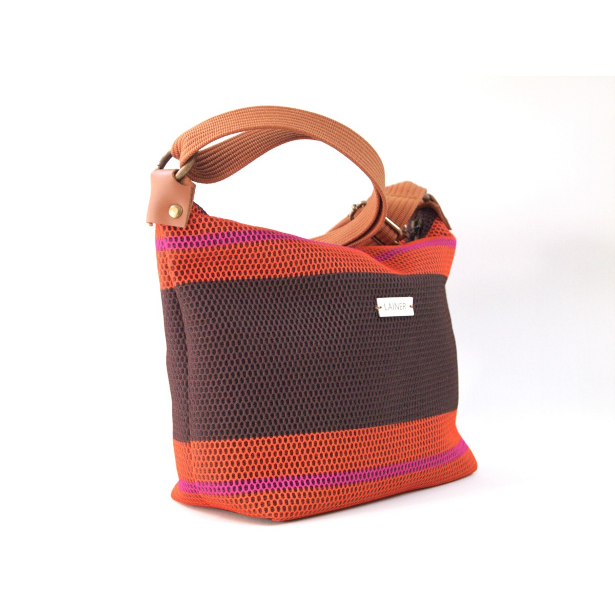 Inspirado en la energía vibrante de la playa Zurriola, este modelo está confeccionado en tejido 3D de alta calidad, resistente y de fácil cuidado. Su estampado exclusivo ha sido diseñado especialmente por y para LAINER, lo que convierte a cada bolso en una pieza única.