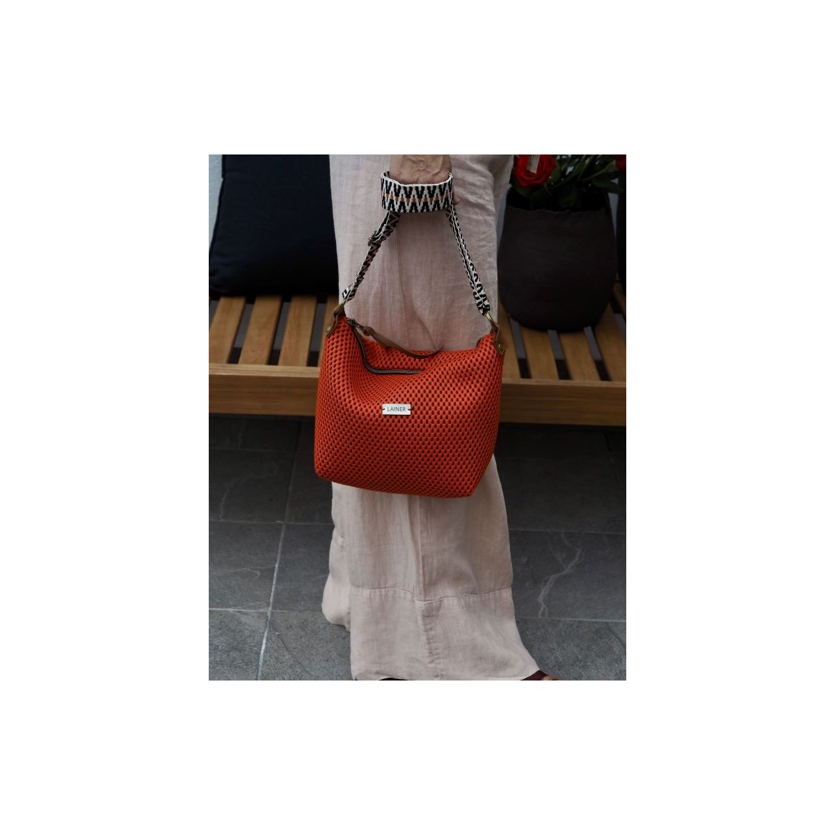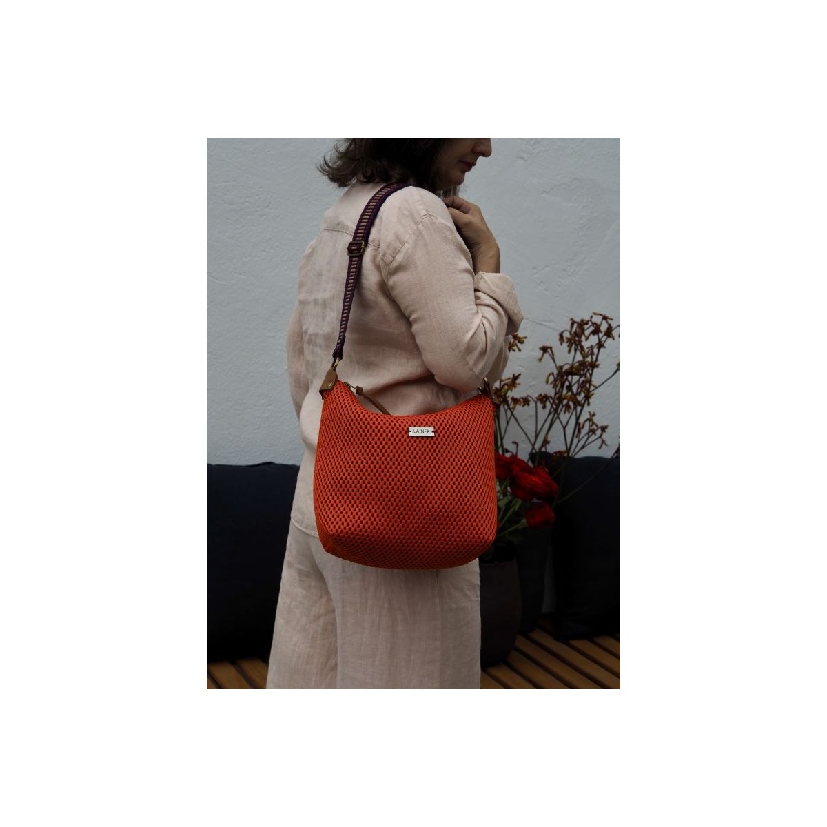 Bolso bandolera elaborado en tejido de rejilla doble 3D, en color Teja.